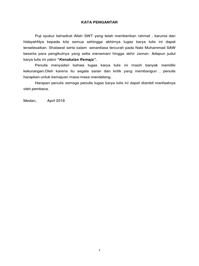 Aug 22, 2015 · karya tulis 'kenakalan remaja' tugas sekolah. Tugas karya tulis yang diberi judul " kenakalan remaja " ini ialah suatu karya tulis yang terbentuk dari hasil kerja sama kelompok dimana tugas ini merupakan prasyarat dari aspek penilaian mata pelajaran bahasa indonesia. Mar 20, 2015 · karya tulis ilmiah "kenakalan remaja'' disusun oleh : Sebagai pengetahuan bagi para remaja tentang bahasa narkoba bagi dirinya. Kenakalan remaja dari diri individu.