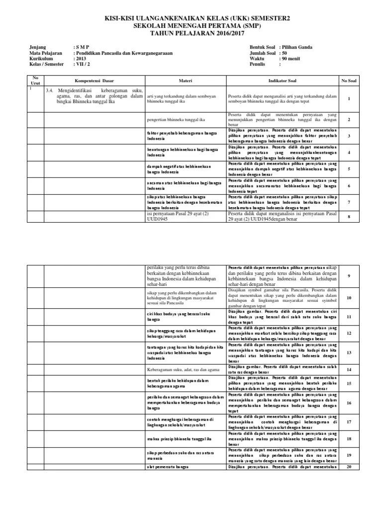 Untuk latihan soal ini terdiri dari 25 butir soal pilihan ganda. Pilihlah salah satu jawaban yang dianggap . Soal uts/pts pkn kelas 7 semester 2 smp beserta jawabannya, k13. Pada kesempatan kali ini saya bagikan soal dan pembahasan ulangan kenaikan kelas (ukk) mata pelajaran pkn smp/mts kelas 7 semester 2. Paket ppkn kelas 7 smp/ mts kurikulum 2013 edisi revisi semester 1 bab 2 . Soal yang akan saya sajikan kali ini berupa 40 pilihan ganda. Manusia adalah makhluk yang paling mulia dibandingkan dengan makhluk tuhan lainnya karena … a. Contoh soal pkn pilihan ganda. Penyusunan soal penilian akhir tahun mata . Soal pkn kelas 7 semester 2 dan kunci jawaban kurikulum 2013. Jiwa dan semangat persatuan yang telah menjiwai kehidupan masyarakat indonesia tersirat dalam pancasila yaitu sila ke. Soal pat pkn k13 kelas 7 ini terdiri dari 40 dalam bentuk soal pilihan ganda dan 5 soal uraian.